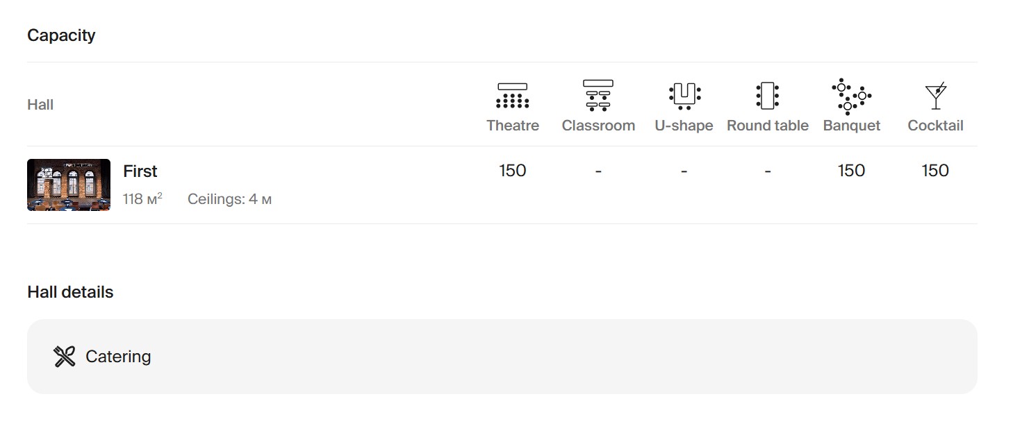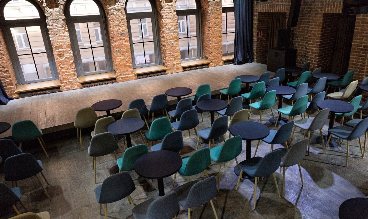 พื้นที่ของคลับเน้นความใกล้ชิด ที่นั่งจัดวางแบบกระชับ ทำให้ผู้ชมรู้สึกมีส่วนร่วมกับการแสดง อาหารและเครื่องดื่มเป็นสไตล์ Finger Food รับประทานง่าย ค่าใช้จ่ายเฉลี่ยอยู่ที่ประมาณ 1,500 รูเบิล เหมาะสำหรับการออกมาสังสรรค์กับเพื่อนในยามค่ำคืน
