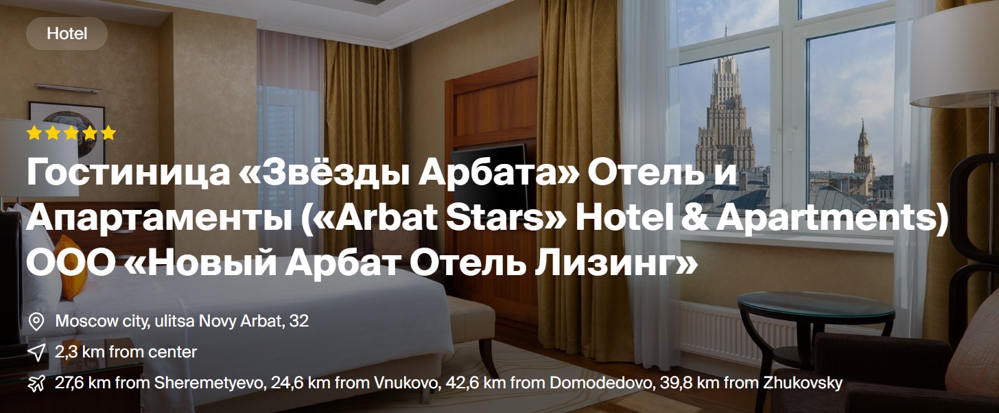 Address: 32 Novy Arbat, Moscow Arbat Stars Hotel Moscow