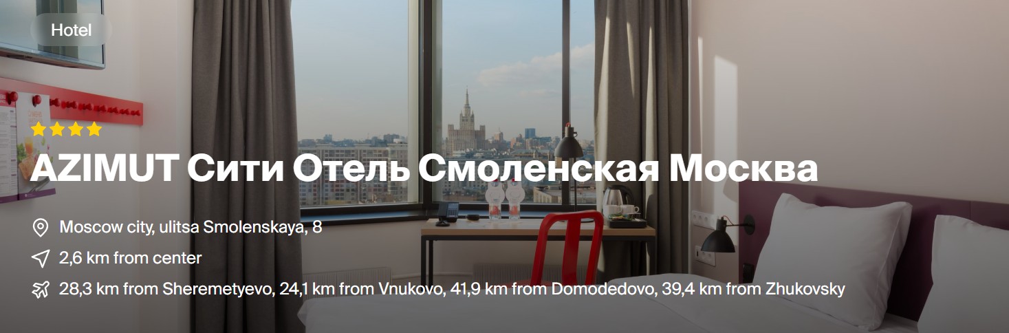 Website: https://azimuthotels.com/en/moscow/azimut-hotel-smolenskaya